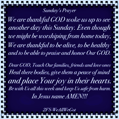 Sunday’s Prayer have a great day 2F’S~WeAllWeGot day prayers up…🙏🏿🙏🏻🙏🏿🙏🏻