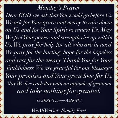 Monday’s Prayer January 8, 2024UncategorizedWeAllWeGot-Family First Good Monday Morning WordPress…🙏🏿🙏🏻🙏🏿🙏🏻 Mondays Prayer Discover more from WeAllWeGot-Family First Subscribe to get the latest posts sent to your email. Type your email… Subscribe Share on X (Opens in new window) X Share on LinkedIn (Opens in new window) LinkedIn Share on Tumblr (Opens in new window) Tumblr Email a link to a friend (Opens in new window) Email Share on Bluesky (Opens in new window) Bluesky Share on Nextdoor (Opens in new window) Nextdoor Share on WhatsApp (Opens in new window) WhatsApp Share on Telegram (Opens in new window) Telegram Share on Pinterest (Opens in new window) Pinterest Share on Pocket (Opens in new window) Pocket Share on Mastodon (Opens in new window) Mastodon Like Loading...