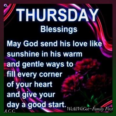 Thursday’s Blessing March 28, 2024UncategorizedWeAllWeGot-Family First Good Morning have a blessed day,.. Thursday’s Blessing Discover more from WeAllWeGot-Family First Subscribe to get the latest posts sent to your email. Type your email… Subscribe Click to share on X (Opens in new window) X Click to share on LinkedIn (Opens in new window) LinkedIn Click to share on Tumblr (Opens in new window) Tumblr Click to email a link to a friend (Opens in new window) Email Click to share on Bluesky (Opens in new window) Bluesky Click to share on Nextdoor (Opens in new window) Nextdoor Click to share on WhatsApp (Opens in new window) WhatsApp Click to share on Telegram (Opens in new window) Telegram Click to share on Pinterest (Opens in new window) Pinterest Click to share on Pocket (Opens in new window) Pocket Click to share on Mastodon (Opens in new window) Mastodon Like Loading...