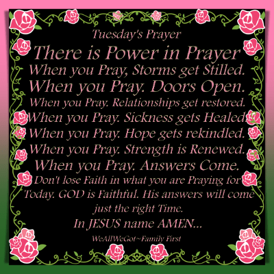 Tuesday’s Prayer May 14, 2024UncategorizedWeAllWeGot-Family First Good Tuesday Morning Prayers Up…🙏🏿🙏🏻🙏🏿🙏🏻 Tuesday Prayer Discover more from WeAllWeGot-Family First Subscribe to get the latest posts sent to your email. Type your email… Subscribe Share on X (Opens in new window) X Share on LinkedIn (Opens in new window) LinkedIn Share on Tumblr (Opens in new window) Tumblr Email a link to a friend (Opens in new window) Email Share on Bluesky (Opens in new window) Bluesky Share on Nextdoor (Opens in new window) Nextdoor Share on WhatsApp (Opens in new window) WhatsApp Share on Telegram (Opens in new window) Telegram Share on Pinterest (Opens in new window) Pinterest Share on Mastodon (Opens in new window) Mastodon Like Loading...