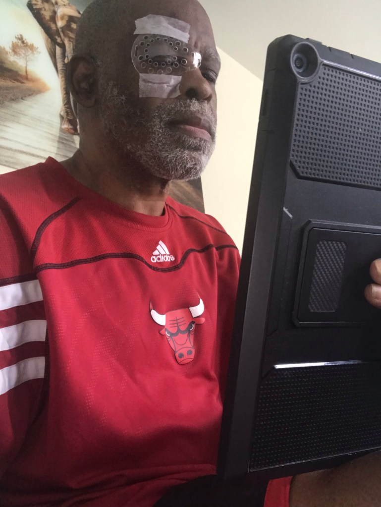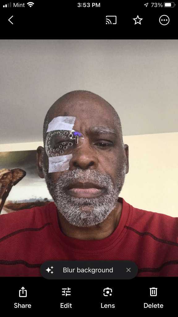 My Current Situation After Right Eye Cataract Surgery lol can’t wait to get the Left done that way I have Double High Definition technology is on a different level and everyday the 7 year comes home from school she says to me Pop have you been on the computer so I’m sneaking this in before she gets here. She runs a tight ship just ask my 15 year grandson everywhere he go’s she not far behind…🤣🤣🤣🤣