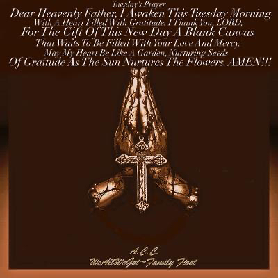 Tuesday’s Prayer September 3, 2024UncategorizedWeAllWeGot-Family First Good AM WordPress have a bless Tuesday…🙏🏿🙏🏻🙏🏿🙏🏻 TP Discover more from WeAllWeGot-Family First Subscribe to get the latest posts sent to your email. Type your email… Subscribe Share on X (Opens in new window) X Share on LinkedIn (Opens in new window) LinkedIn Share on Tumblr (Opens in new window) Tumblr Email a link to a friend (Opens in new window) Email Share on Bluesky (Opens in new window) Bluesky Share on Nextdoor (Opens in new window) Nextdoor Share on WhatsApp (Opens in new window) WhatsApp Share on Telegram (Opens in new window) Telegram Share on Pinterest (Opens in new window) Pinterest Share on Mastodon (Opens in new window) Mastodon Like Loading...