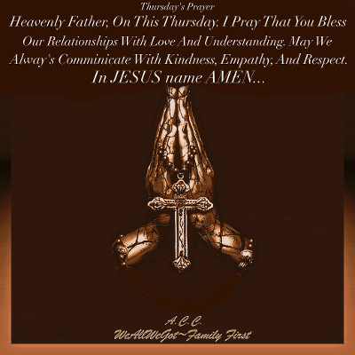 Thursday’s Prayer September 13, 2024UncategorizedWeAllWeGot-Family First Good Thursday Morning WP…🙏🏿🙏🏻🙏🏿🙏🏻 TP Discover more from WeAllWeGot-Family First Subscribe to get the latest posts sent to your email. Type your email… Subscribe Share on X (Opens in new window) X Share on LinkedIn (Opens in new window) LinkedIn Share on Tumblr (Opens in new window) Tumblr Email a link to a friend (Opens in new window) Email Share on Bluesky (Opens in new window) Bluesky Share on Nextdoor (Opens in new window) Nextdoor Share on WhatsApp (Opens in new window) WhatsApp Share on Telegram (Opens in new window) Telegram Share on Pinterest (Opens in new window) Pinterest Share on Mastodon (Opens in new window) Mastodon Like Loading...