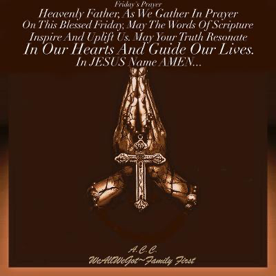 Friday’s Prayer November 15, 2024UncategorizedWeAllWeGot-Family First Good Friday Morning WordPress…🙏🏿🙏🏻🙏🏿🙏🏻 Friday’s Prayer Discover more from WeAllWeGot-Family First Subscribe to get the latest posts sent to your email. Type your email… Subscribe Share on X (Opens in new window) X Share on LinkedIn (Opens in new window) LinkedIn Share on Tumblr (Opens in new window) Tumblr Email a link to a friend (Opens in new window) Email Share on Bluesky (Opens in new window) Bluesky Share on Nextdoor (Opens in new window) Nextdoor Share on WhatsApp (Opens in new window) WhatsApp Share on Telegram (Opens in new window) Telegram Share on Pinterest (Opens in new window) Pinterest Share on Mastodon (Opens in new window) Mastodon Like Loading...