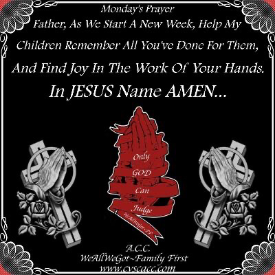 Monday’s Prayer February 3, 2025UncategorizedWeAllWeGot-Family First Good Morning WP…🙏🏿🙏🏻🙏🏿🙏🏻 Monday’s Prayer Discover more from WeAllWeGot-Family First Subscribe to get the latest posts sent to your email. Type your email… Subscribe Share on X (Opens in new window) X Share on LinkedIn (Opens in new window) LinkedIn Share on Tumblr (Opens in new window) Tumblr Email a link to a friend (Opens in new window) Email Share on Bluesky (Opens in new window) Bluesky Share on Nextdoor (Opens in new window) Nextdoor Share on WhatsApp (Opens in new window) WhatsApp Share on Telegram (Opens in new window) Telegram Share on Pinterest (Opens in new window) Pinterest Share on Pocket (Opens in new window) Pocket Share on Mastodon (Opens in new window) Mastodon Like Loading...