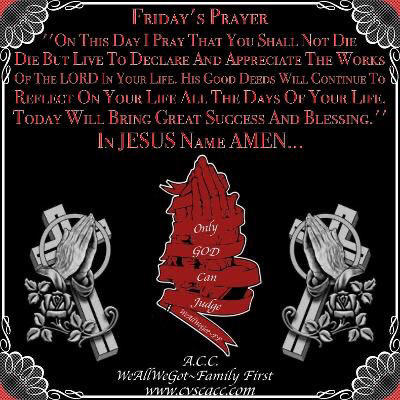Friday’s Prayer March 28, 2025UncategorizedWeAllWeGot-Family First Good Friday Morning WordPress…🙏🏿🙏🙏🏿🙏 Friday’s Prayer Discover more from WeAllWeGot-Family First Subscribe to get the latest posts sent to your email. Type your email… Subscribe Click to share on X (Opens in new window) X Click to share on LinkedIn (Opens in new window) LinkedIn Click to share on Tumblr (Opens in new window) Tumblr Click to email a link to a friend (Opens in new window) Email Click to share on Bluesky (Opens in new window) Bluesky Click to share on Nextdoor (Opens in new window) Nextdoor Click to share on WhatsApp (Opens in new window) WhatsApp Click to share on Telegram (Opens in new window) Telegram Click to share on Pinterest (Opens in new window) Pinterest Click to share on Pocket (Opens in new window) Pocket Click to share on Mastodon (Opens in new window) Mastodon Like Loading...
