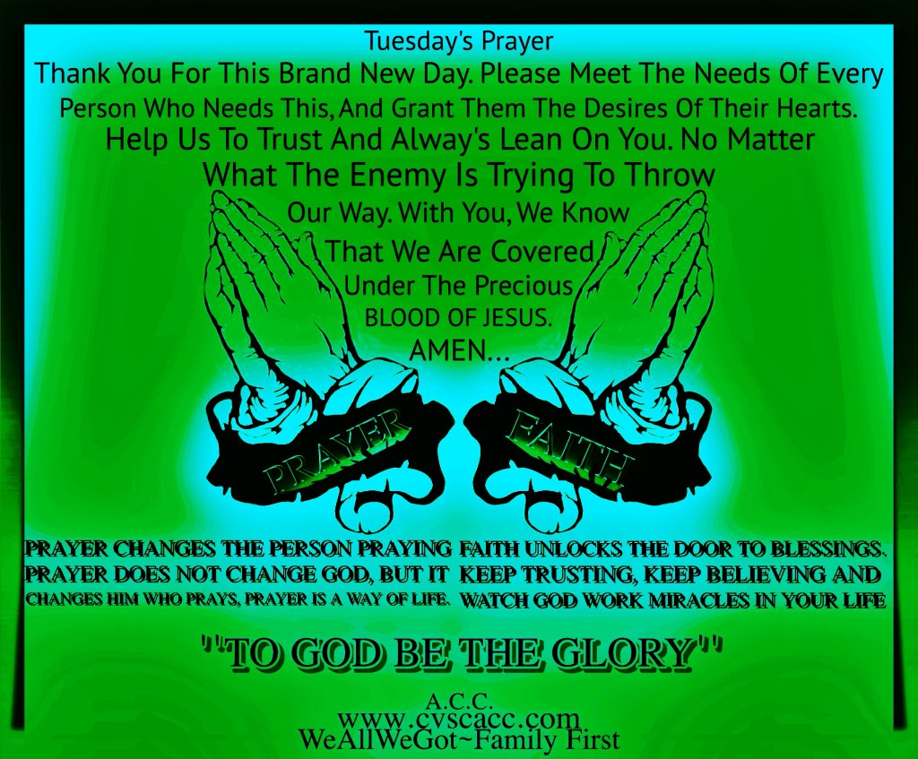 Tuesday’s Prayer June 3, 2025UncategorizedWeAllWeGot-Family First Good Tuesday Morning WordPress…🙏🏿🙏🙏🏿🙏 TP Discover more from WeAllWeGot-Family First Subscribe to get the latest posts sent to your email. Type your email… Subscribe Click to share on X (Opens in new window) X Click to share on LinkedIn (Opens in new window) LinkedIn Click to share on Tumblr (Opens in new window) Tumblr Click to email a link to a friend (Opens in new window) Email Click to share on Bluesky (Opens in new window) Bluesky Click to share on Nextdoor (Opens in new window) Nextdoor Click to share on WhatsApp (Opens in new window) WhatsApp Click to share on Telegram (Opens in new window) Telegram Click to share on Pinterest (Opens in new window) Pinterest Click to share on Pocket (Opens in new window) Pocket Click to share on Mastodon (Opens in new window) Mastodon Like Loading...