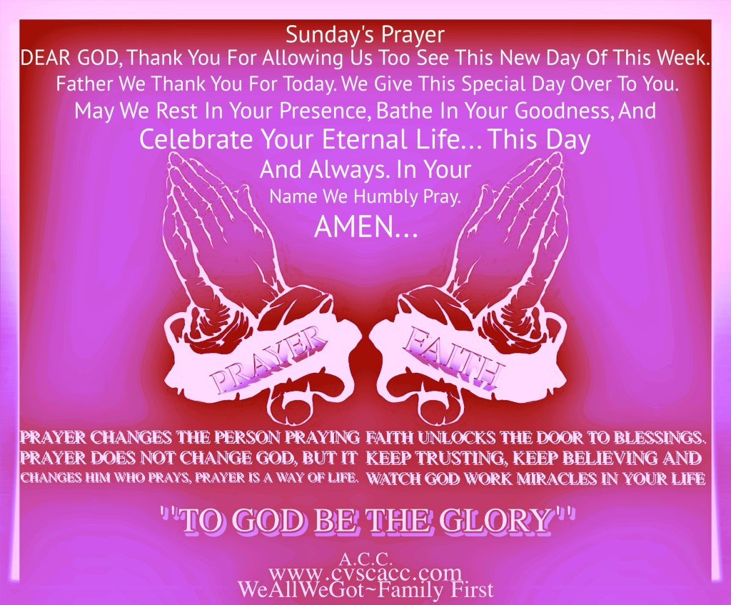 Sunday’s Prayer June 8, 2025UncategorizedWeAllWeGot-Family First Good Morning WordPress…🙏🏿🙏🙏🏿🙏 Sunday’s Prayer Discover more from WeAllWeGot-Family First Subscribe to get the latest posts sent to your email. Type your email… Subscribe Click to share on X (Opens in new window) X Click to share on LinkedIn (Opens in new window) LinkedIn Click to share on Tumblr (Opens in new window) Tumblr Click to email a link to a friend (Opens in new window) Email Click to share on Bluesky (Opens in new window) Bluesky Click to share on Nextdoor (Opens in new window) Nextdoor Click to share on WhatsApp (Opens in new window) WhatsApp Click to share on Telegram (Opens in new window) Telegram Click to share on Pinterest (Opens in new window) Pinterest Click to share on Pocket (Opens in new window) Pocket Click to share on Mastodon (Opens in new window) Mastodon Like Loading...