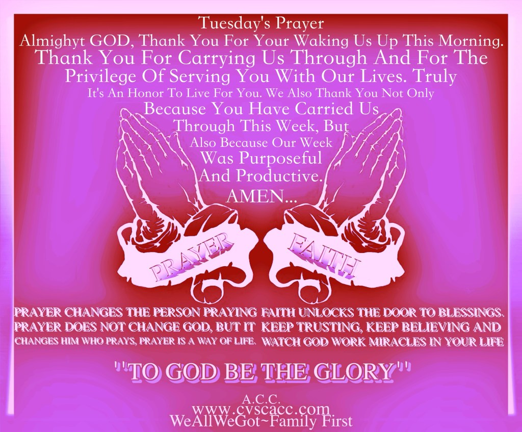 Tuesday’s Prayer June 10, 2025UncategorizedWeAllWeGot-Family First Good Tuesday Morning WordPress…🙏🏿🙏🙏🏿🙏 Tuesday’s Prayer Discover more from WeAllWeGot-Family First Subscribe to get the latest posts sent to your email. Type your email… Subscribe Click to share on X (Opens in new window) X Click to share on LinkedIn (Opens in new window) LinkedIn Click to share on Tumblr (Opens in new window) Tumblr Click to email a link to a friend (Opens in new window) Email Click to share on Bluesky (Opens in new window) Bluesky Click to share on Nextdoor (Opens in new window) Nextdoor Click to share on WhatsApp (Opens in new window) WhatsApp Click to share on Telegram (Opens in new window) Telegram Click to share on Pinterest (Opens in new window) Pinterest Click to share on Pocket (Opens in new window) Pocket Click to share on Mastodon (Opens in new window) Mastodon Like Loading...