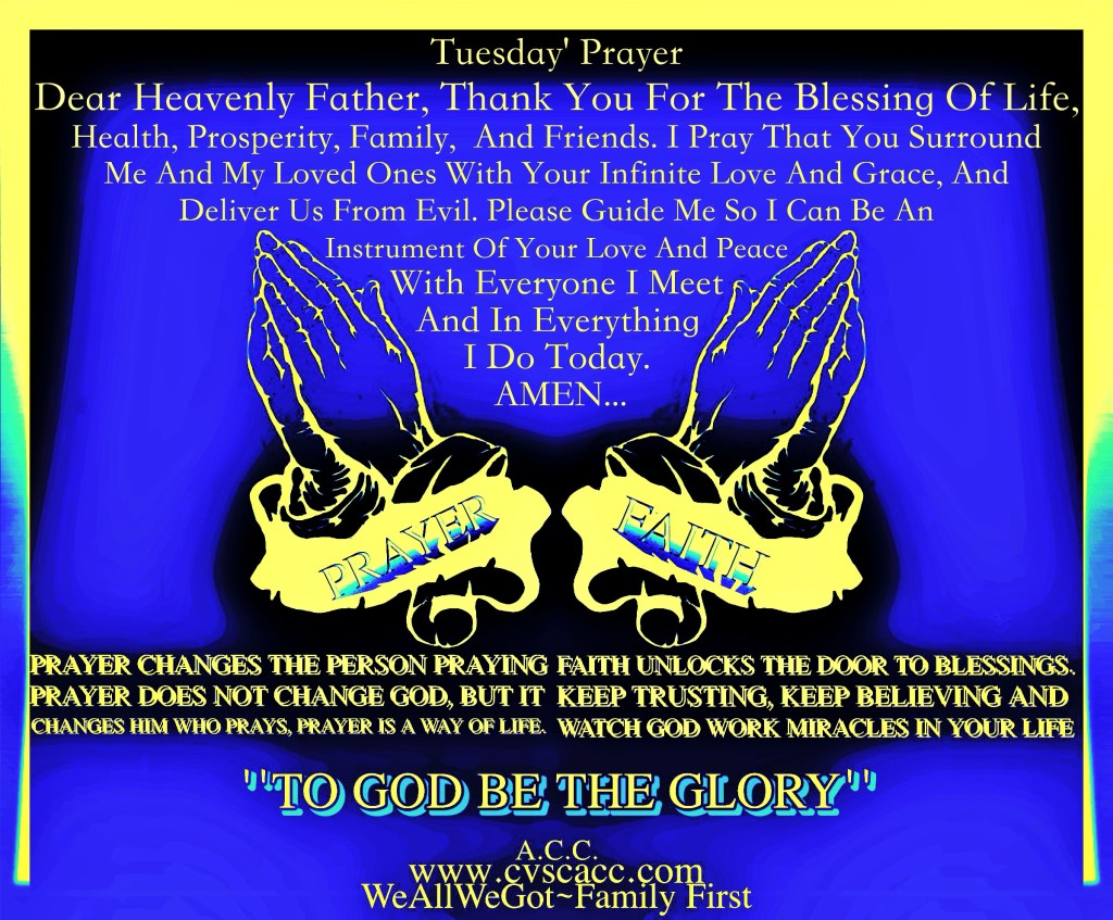 Tuesday’s Prayer July 9, 2025UncategorizedWeAllWeGot-Family First Morning WordPress…🙏🏿🙏🙏🏿🙏 Tuesday’s Prayer Discover more from WeAllWeGot-Family First Subscribe to get the latest posts sent to your email. Type your email… Subscribe Click to share on X (Opens in new window) X Click to share on LinkedIn (Opens in new window) LinkedIn Click to share on Tumblr (Opens in new window) Tumblr Click to email a link to a friend (Opens in new window) Email Click to share on Bluesky (Opens in new window) Bluesky Click to share on Nextdoor (Opens in new window) Nextdoor Click to share on WhatsApp (Opens in new window) WhatsApp Click to share on Telegram (Opens in new window) Telegram Click to share on Pinterest (Opens in new window) Pinterest Click to share on Pocket (Opens in new window) Pocket Click to share on Mastodon (Opens in new window) Mastodon Like Loading...