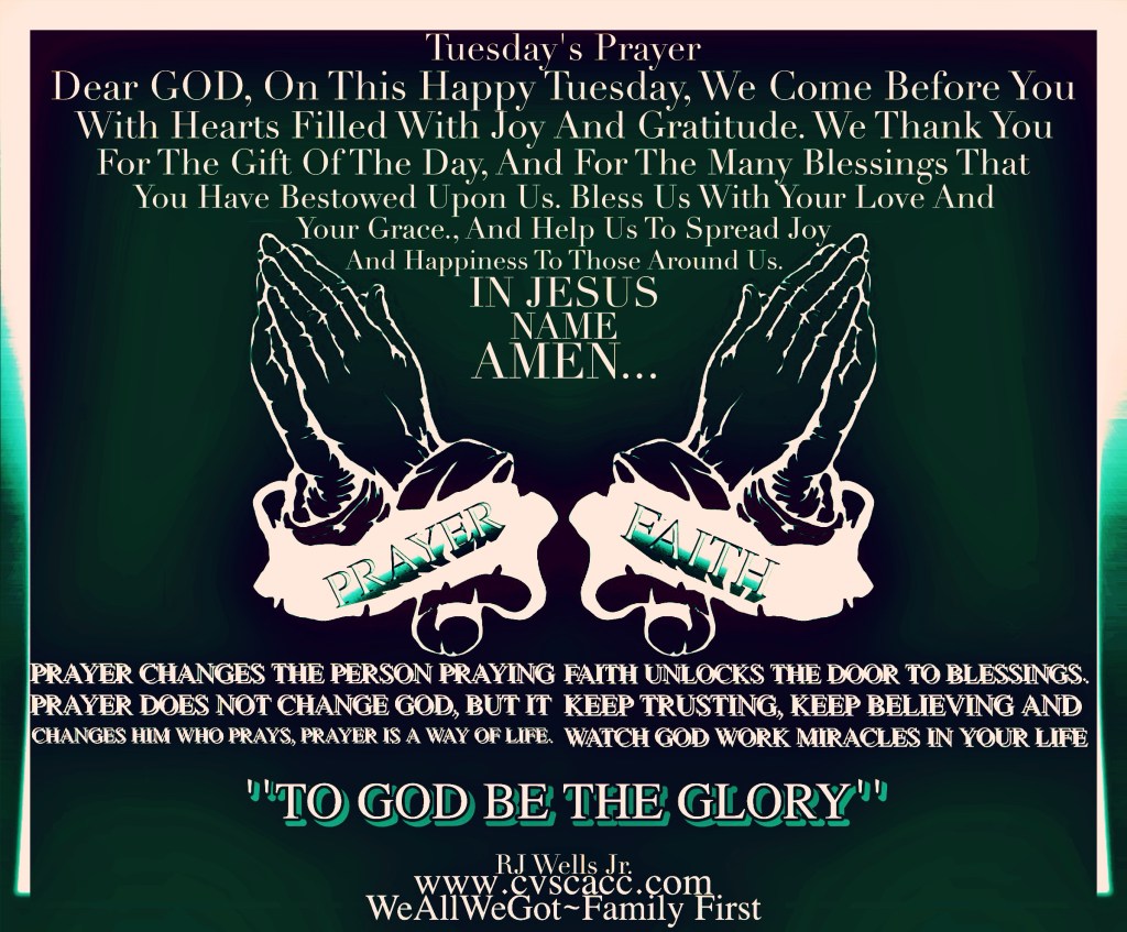 Tuesday’s Prayer August 19, 2025UncategorizedWeAllWeGot-Family First Morning WordPress…🙏🏿🙏🙏🏿🙏 Tuesday’s Prayer Discover more from WeAllWeGot-Family First Subscribe to get the latest posts sent to your email. Type your email… Subscribe Click to share on X (Opens in new window) X Click to share on LinkedIn (Opens in new window) LinkedIn Click to share on Tumblr (Opens in new window) Tumblr Click to email a link to a friend (Opens in new window) Email Click to share on Bluesky (Opens in new window) Bluesky Click to share on Nextdoor (Opens in new window) Nextdoor Click to share on WhatsApp (Opens in new window) WhatsApp Click to share on Telegram (Opens in new window) Telegram Click to share on Pinterest (Opens in new window) Pinterest Click to share on Pocket (Opens in new window) Pocket Click to share on Mastodon (Opens in new window) Mastodon Like Loading...