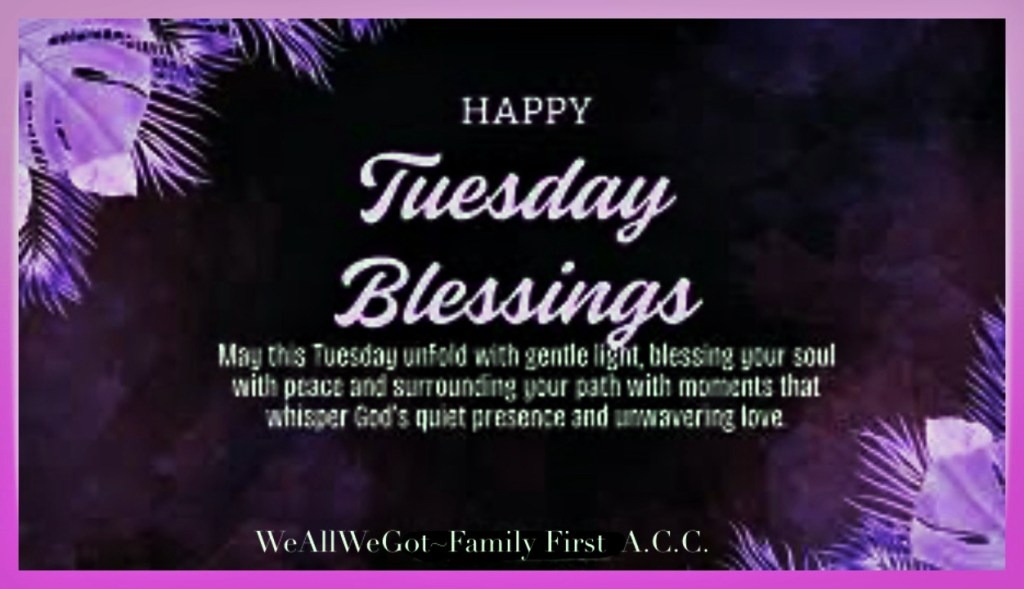 Tuesday’s Blessing March 17, 2026UncategorizedWeAllWeGot-Family First Good Tuesday Morning WordPress…🙏🏿🙏🙏🏿🙏 Tuesday’s Blessing Discover more from WeAllWeGot-Family First Subscribe to get the latest posts sent to your email. Type your email… Subscribe Share on X (Opens in new window) X Share on LinkedIn (Opens in new window) LinkedIn Share on Tumblr (Opens in new window) Tumblr Email a link to a friend (Opens in new window) Email Share on Bluesky (Opens in new window) Bluesky Share on Nextdoor (Opens in new window) Nextdoor Share on WhatsApp (Opens in new window) WhatsApp Share on Telegram (Opens in new window) Telegram Share on Pinterest (Opens in new window) Pinterest Share on Mastodon (Opens in new window) Mastodon Like Loading...