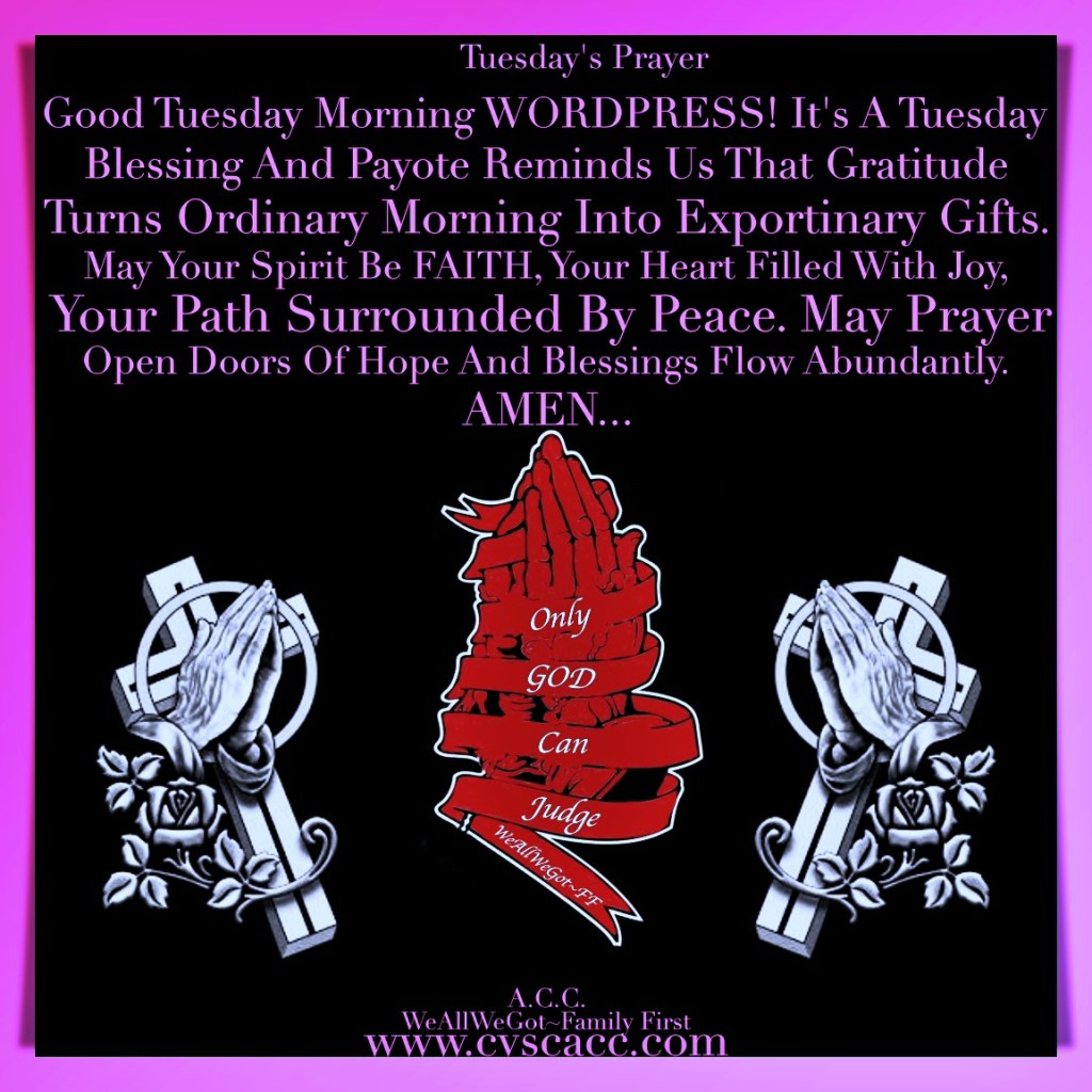 Tuesday’s Prayer March 17, 2026UncategorizedWeAllWeGot-Family First Morning WordPress…🙏🏿🙏🙏🏿 Tuesday’s Prayer Discover more from WeAllWeGot-Family First Subscribe to get the latest posts sent to your email. Type your email… Subscribe Share on X (Opens in new window) X Share on LinkedIn (Opens in new window) LinkedIn Share on Tumblr (Opens in new window) Tumblr Email a link to a friend (Opens in new window) Email Share on Bluesky (Opens in new window) Bluesky Share on Nextdoor (Opens in new window) Nextdoor Share on WhatsApp (Opens in new window) WhatsApp Share on Telegram (Opens in new window) Telegram Share on Pinterest (Opens in new window) Pinterest Share on Mastodon (Opens in new window) Mastodon Like Loading...